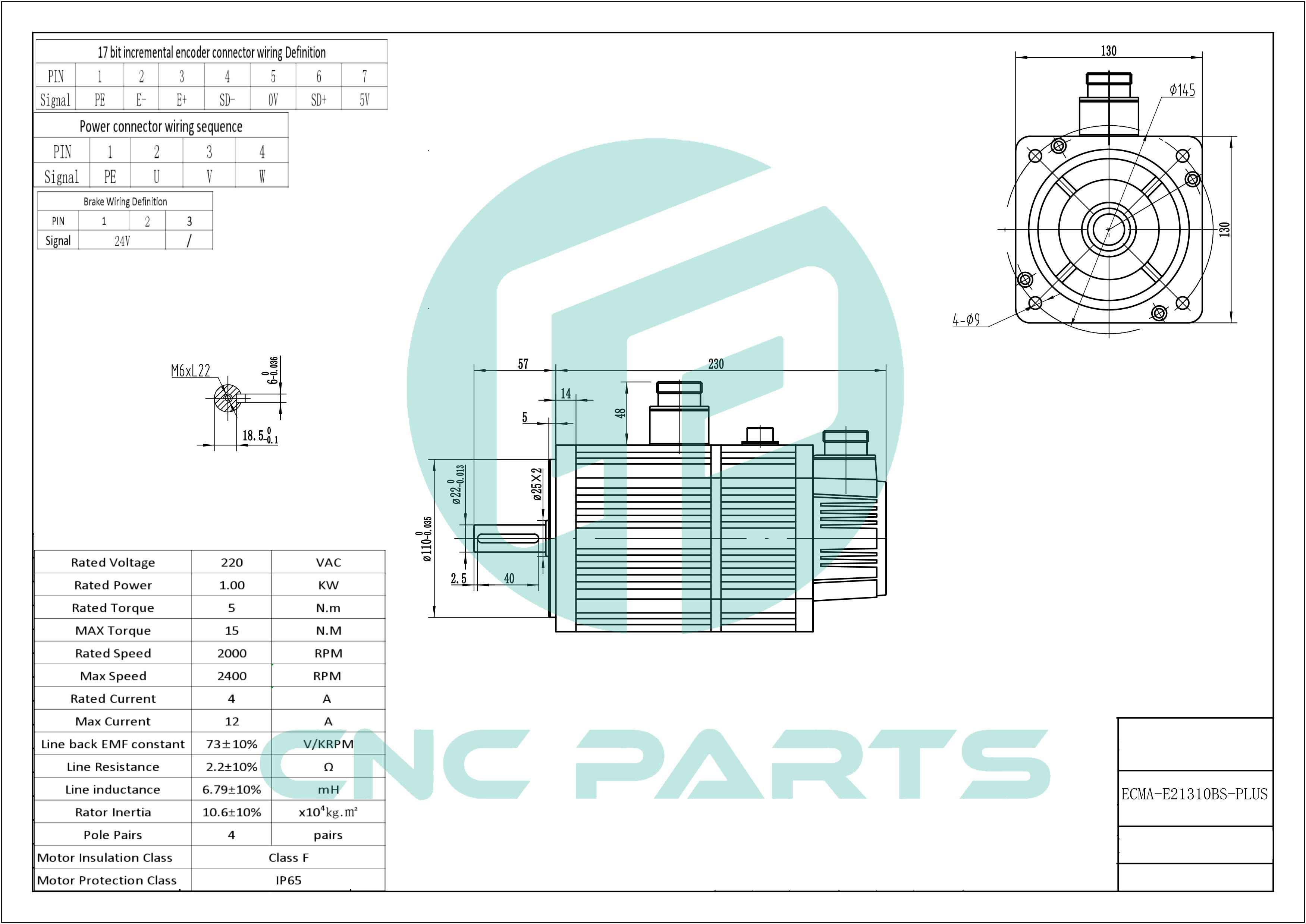 دیتاشیت سروو موتور 1kw کیلووات پلاس ترمزدار hqm اچ کیو ام 2000 دور rpm مدل ECMA-E21310BS-PLUS کد درایو ASD-F-1521-B به همراه کانکتور